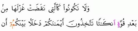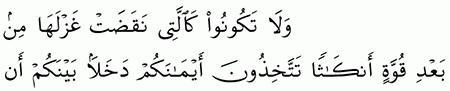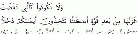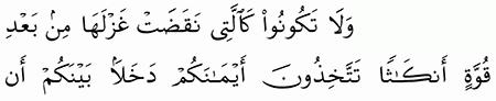 الآية رقم {92} من سورة ( النحل)